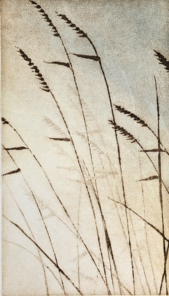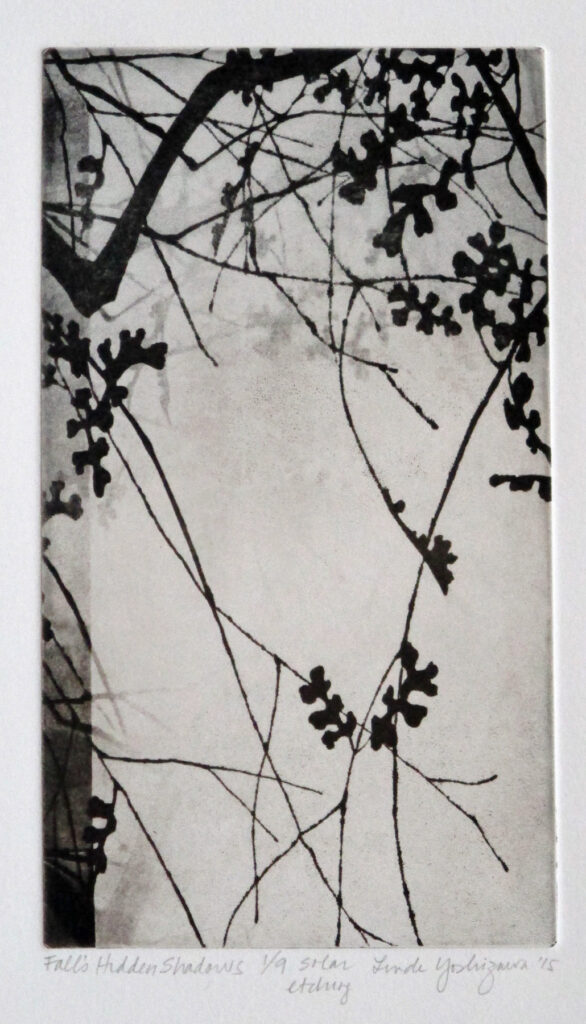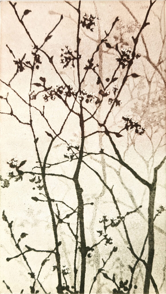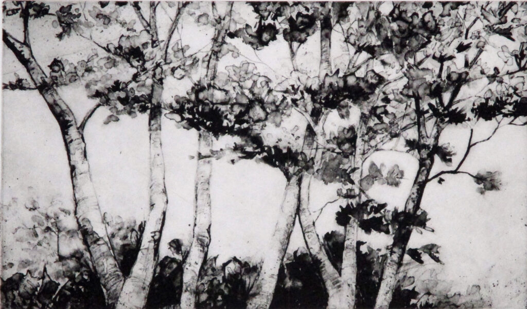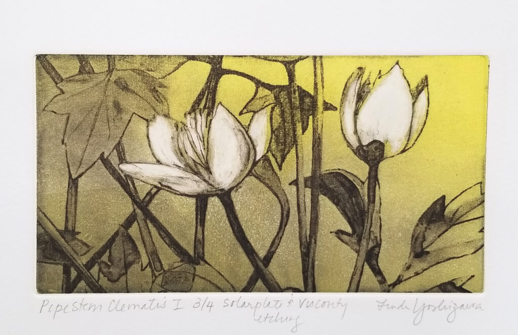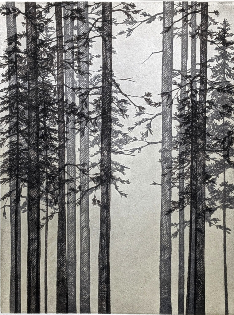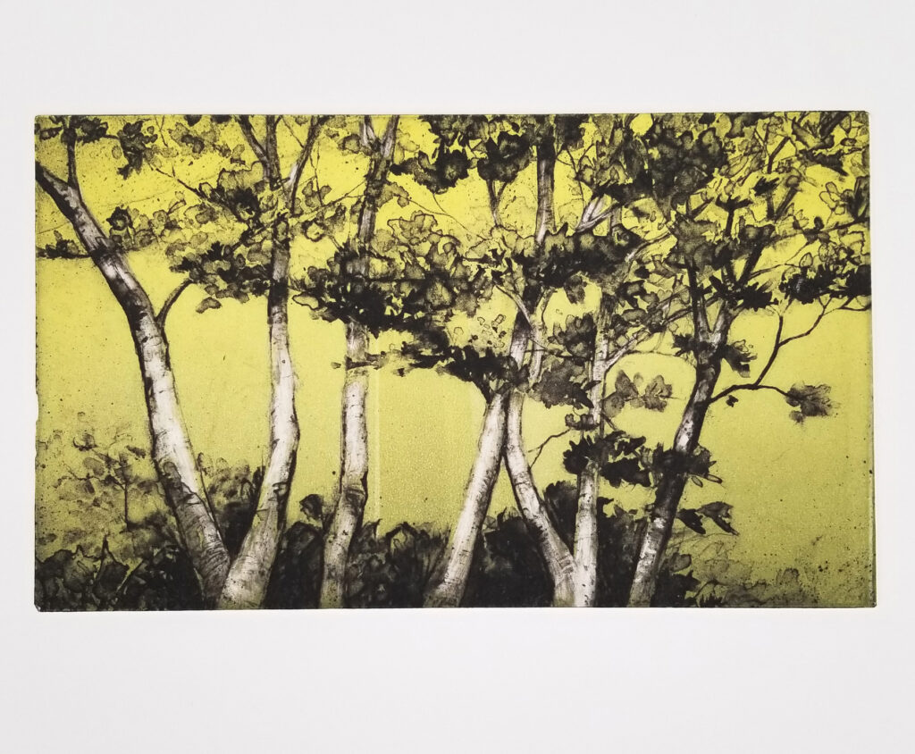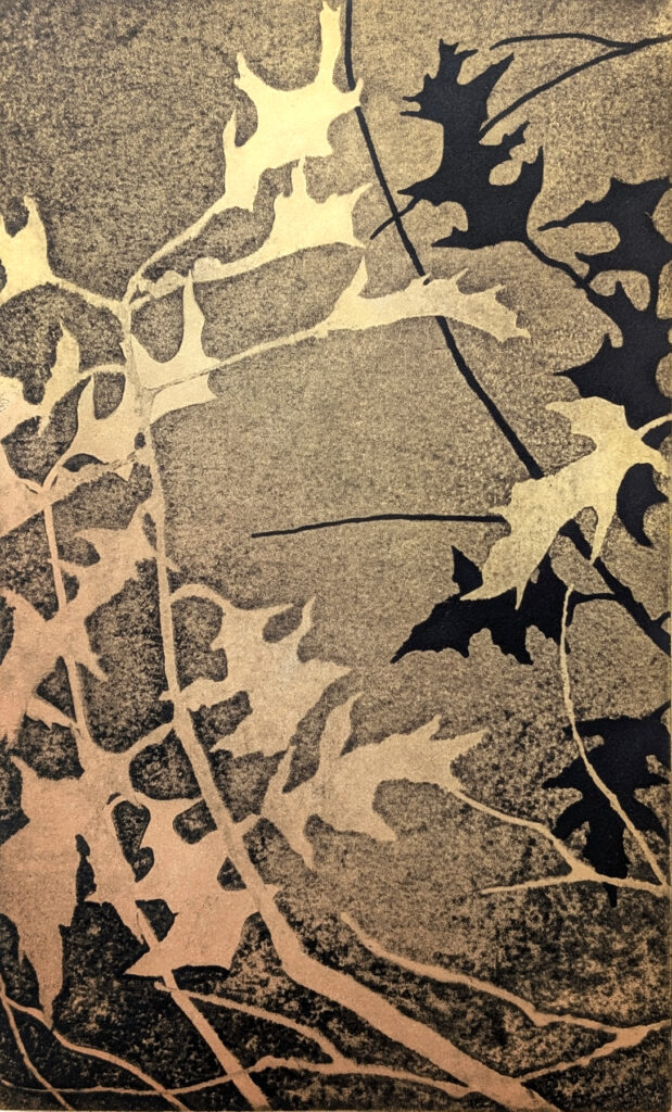 Solarplates are metal plates which are coated with a light-sensitive polymer emulsion. A black and white transparency is placed over the plate and exposed to ultraviolet light to harden the emulsion. After the dark (soft) areas are washed out with water the solarplate is inked and printed using the etching press.