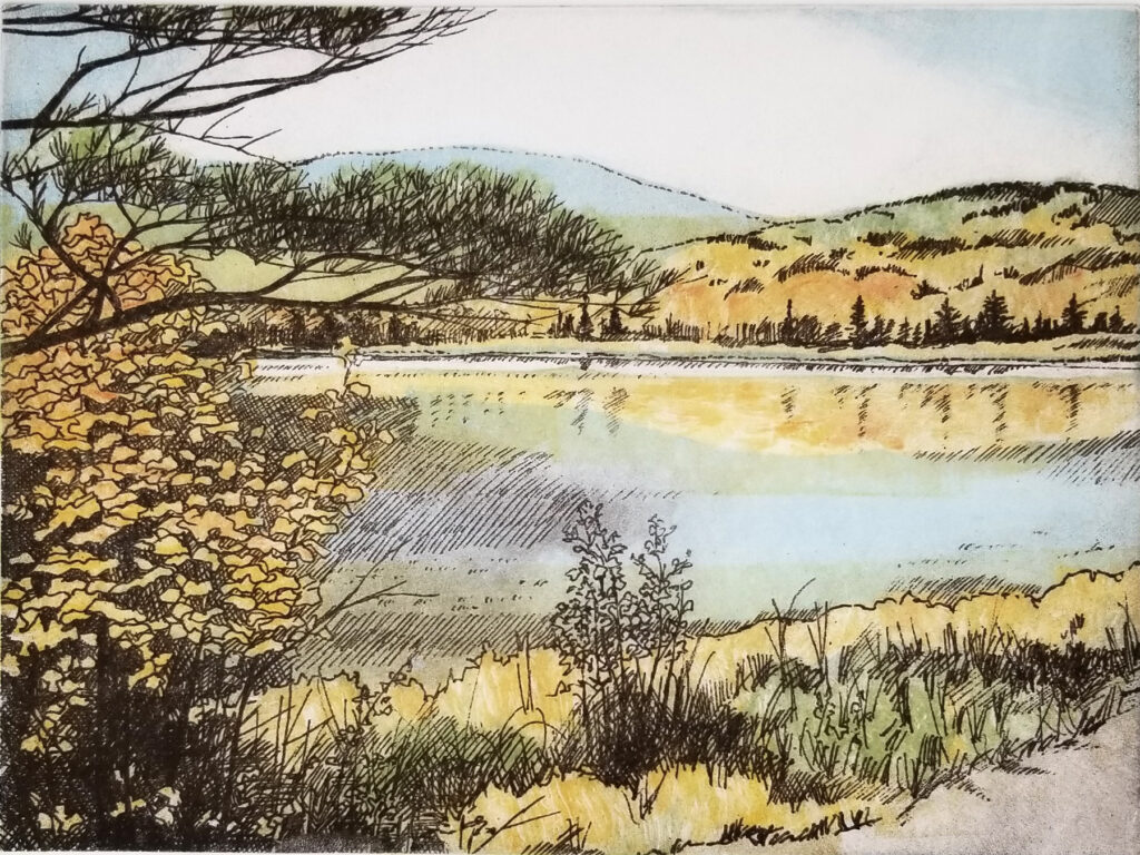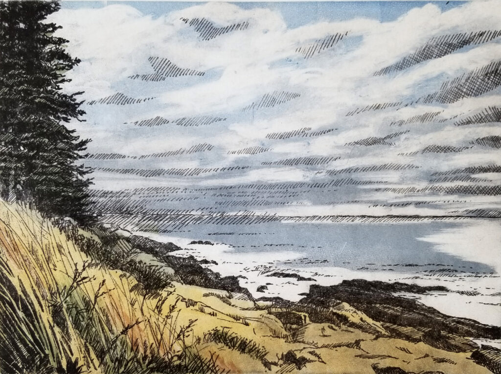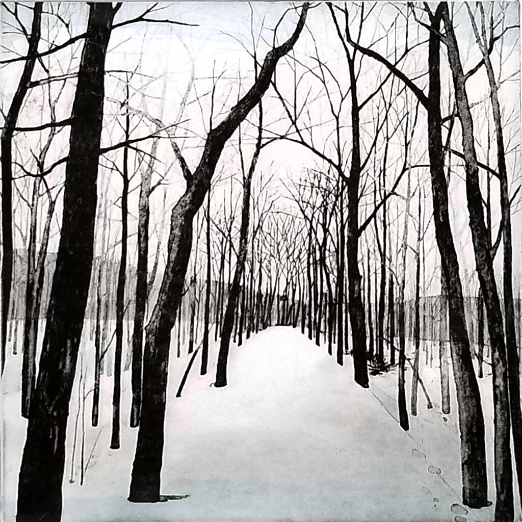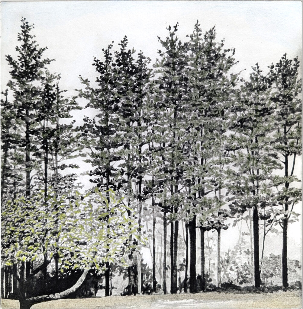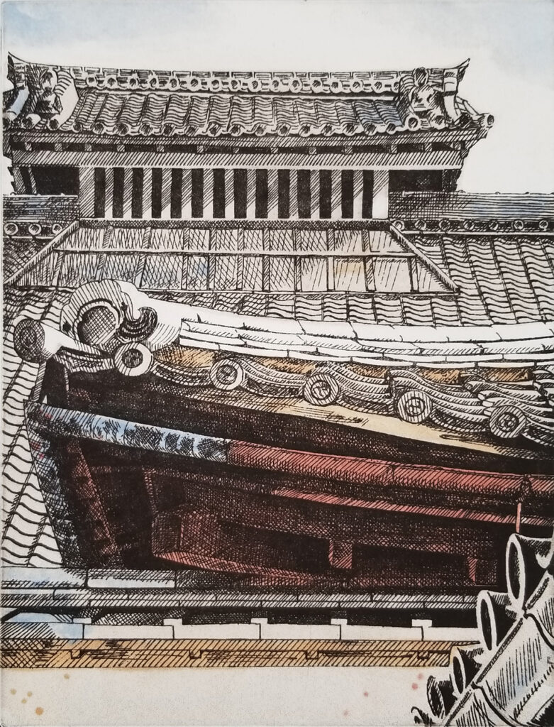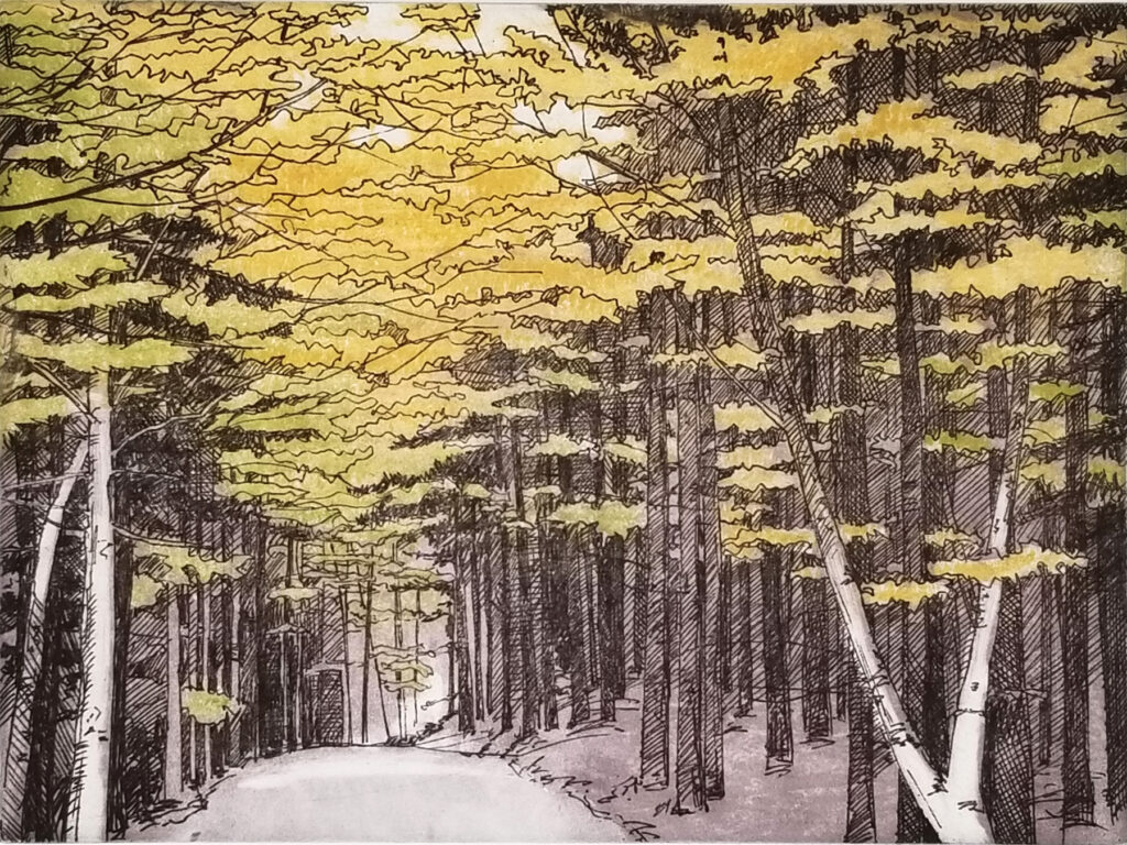 Solarplates are metal plates which are coated with a light-sensitive polymer emulsion. A black and white transparency is placed over the plate and exposed to ultraviolet light to harden the emulsion. After the dark (soft) areas are washed out with water the solarplate is inked and printed using the etching press.