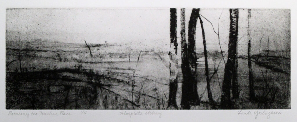 Solarplates are metal plates which are coated with a light-sensitive polymer emulsion. A black and white transparency is placed over the plate and exposed to ultraviolet light to harden the emulsion. After the dark (soft) areas are washed out with water the solarplate is inked and printed using the etching press.