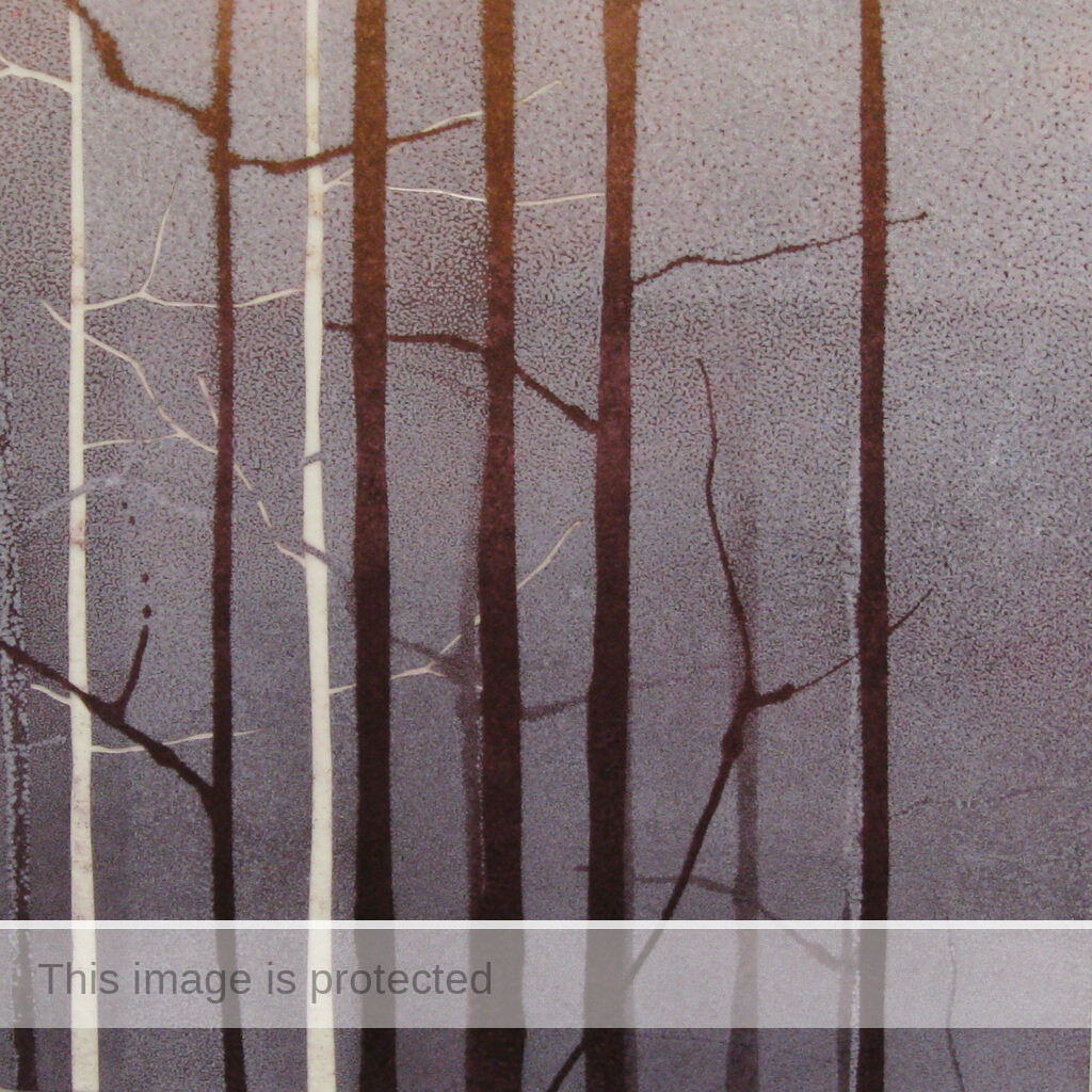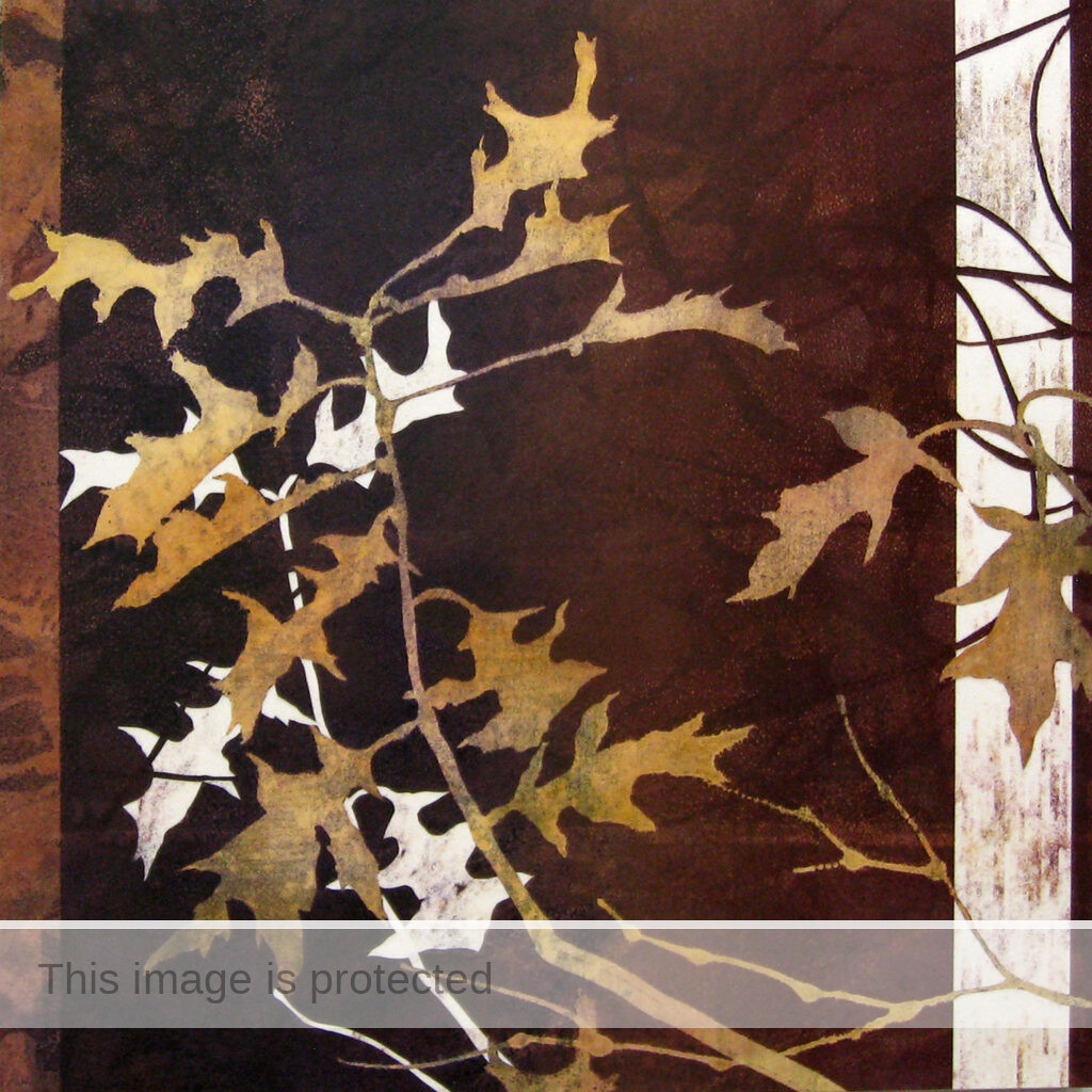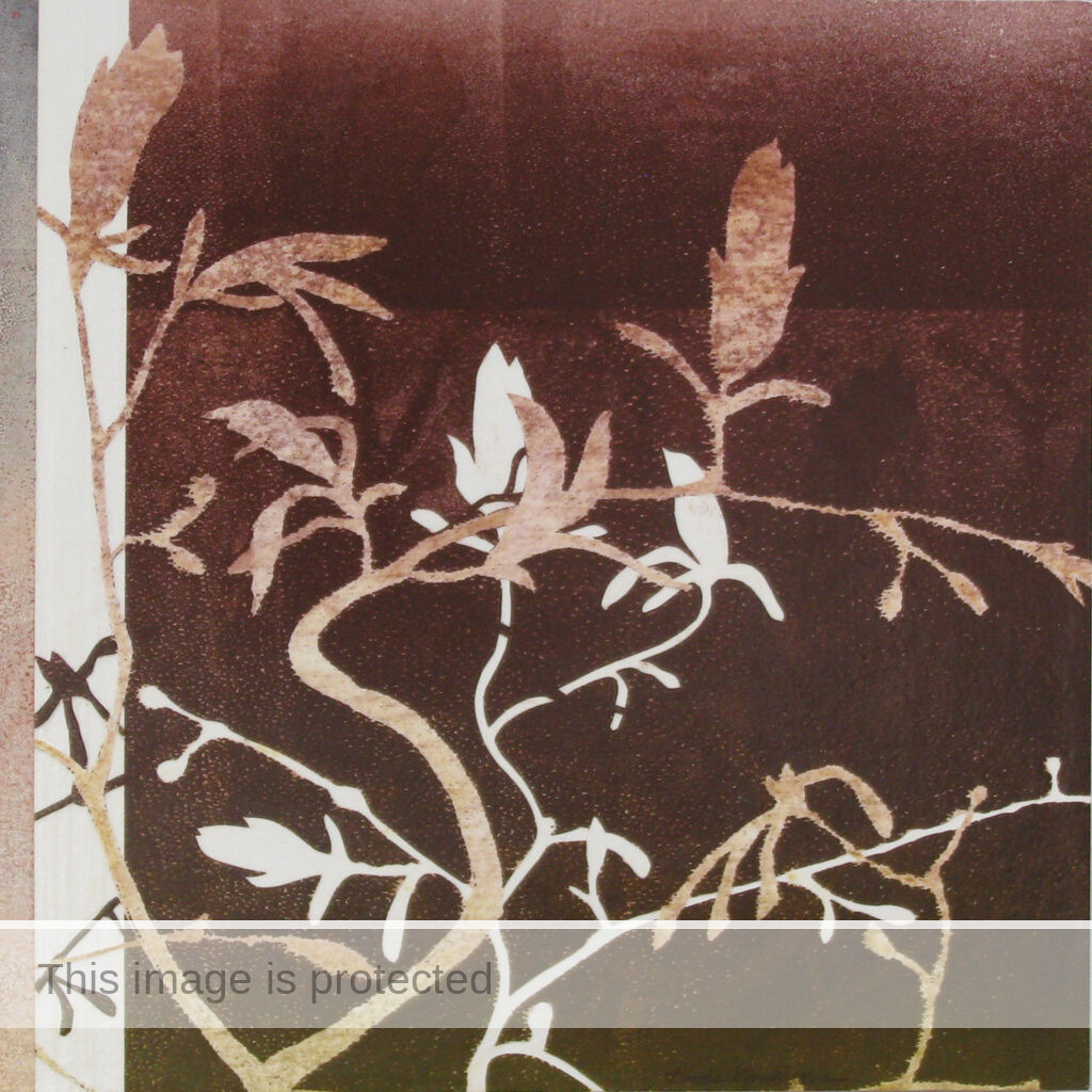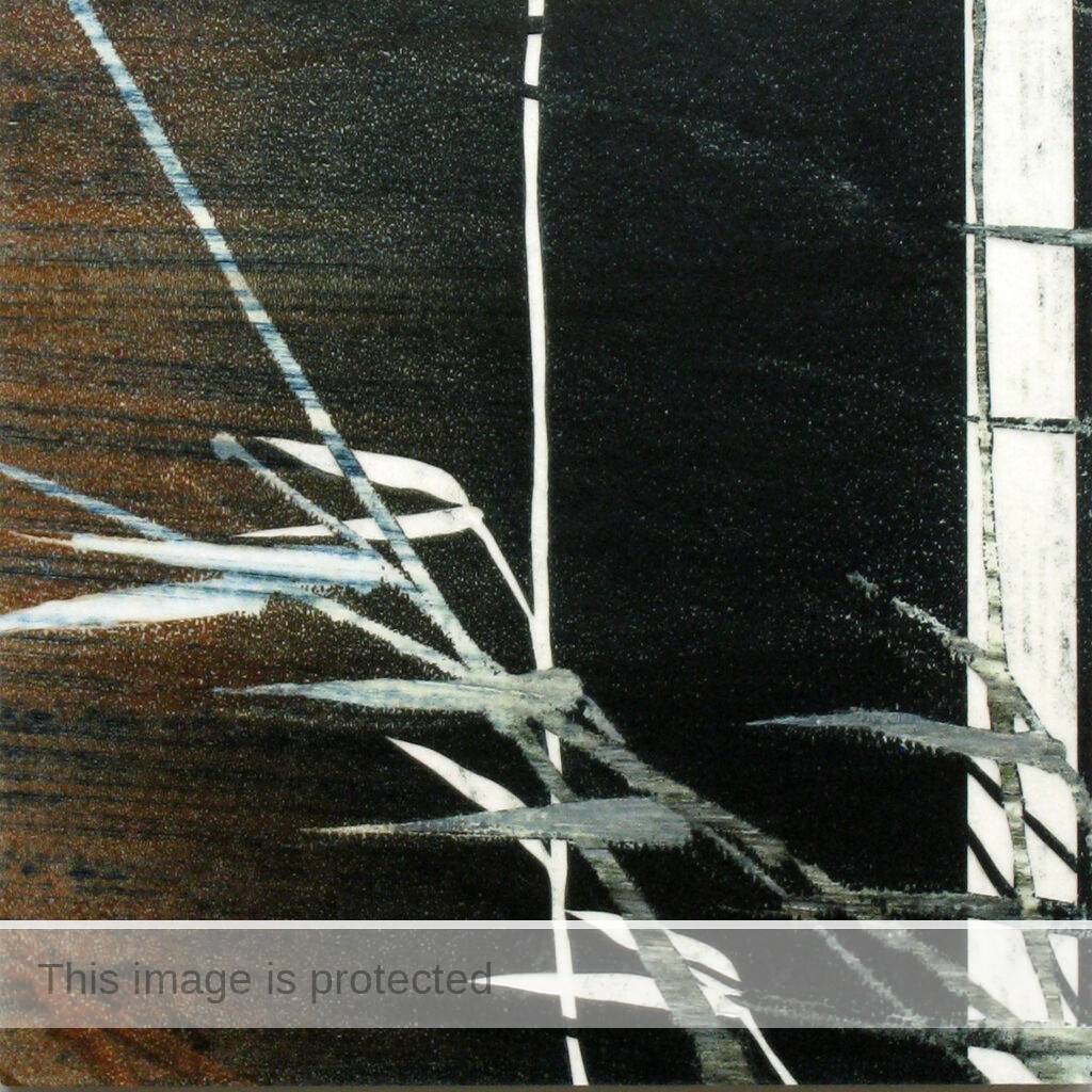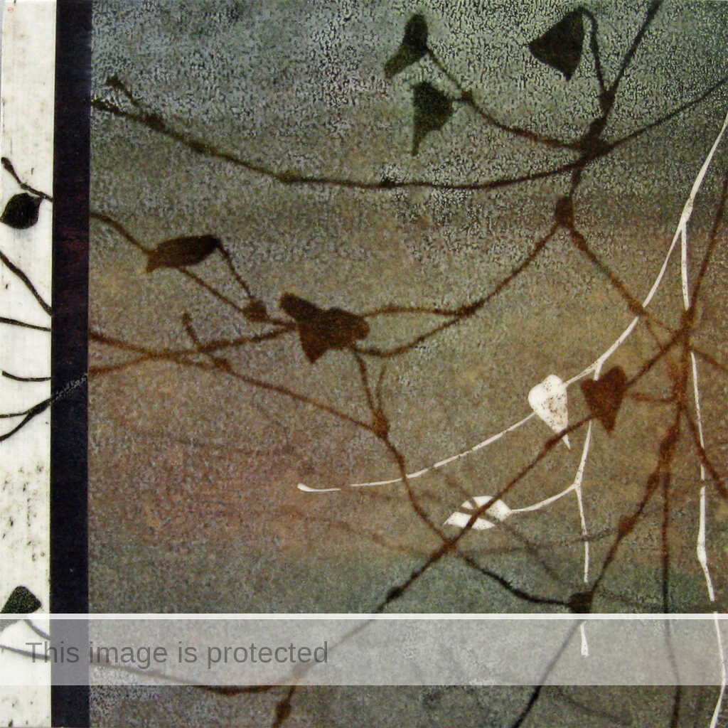 “Kiri-e” means “cut art” in Japanese. These monotypes were glued to a wood panel and parts were cut out to reveal the white paper underneath.