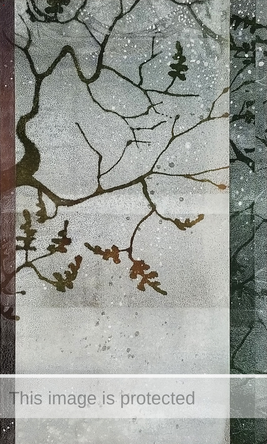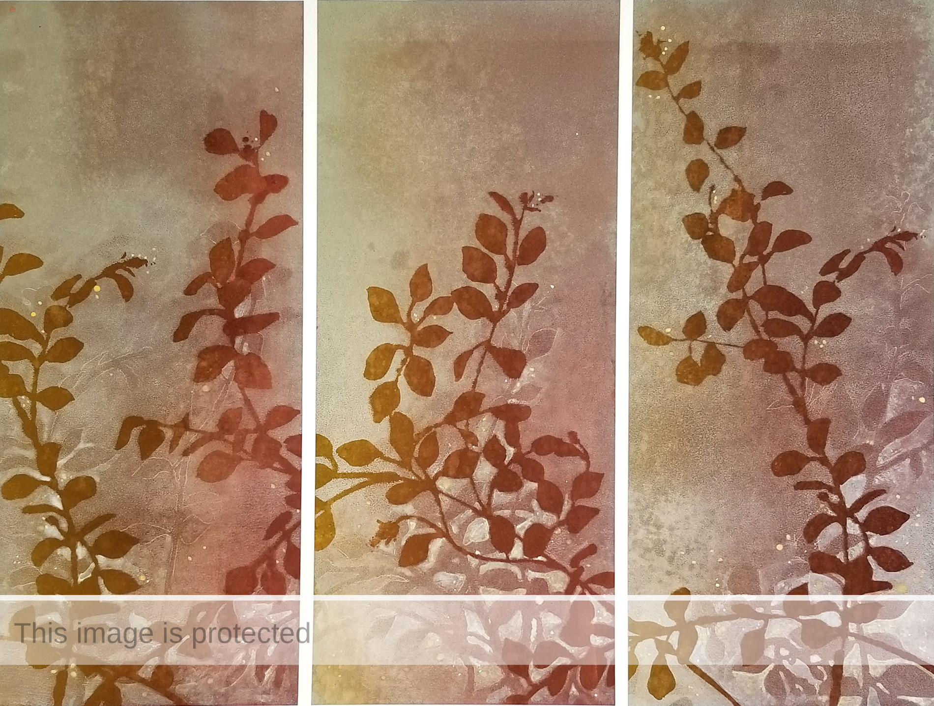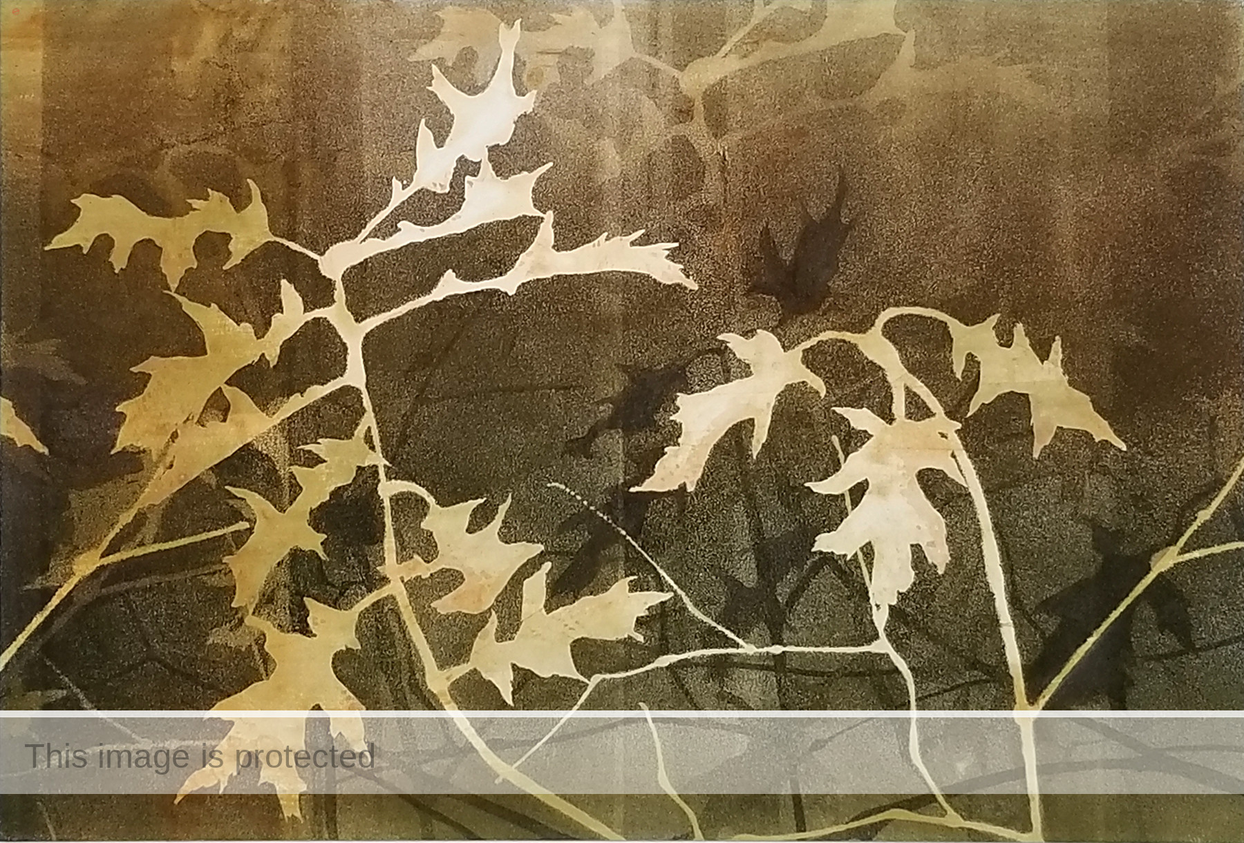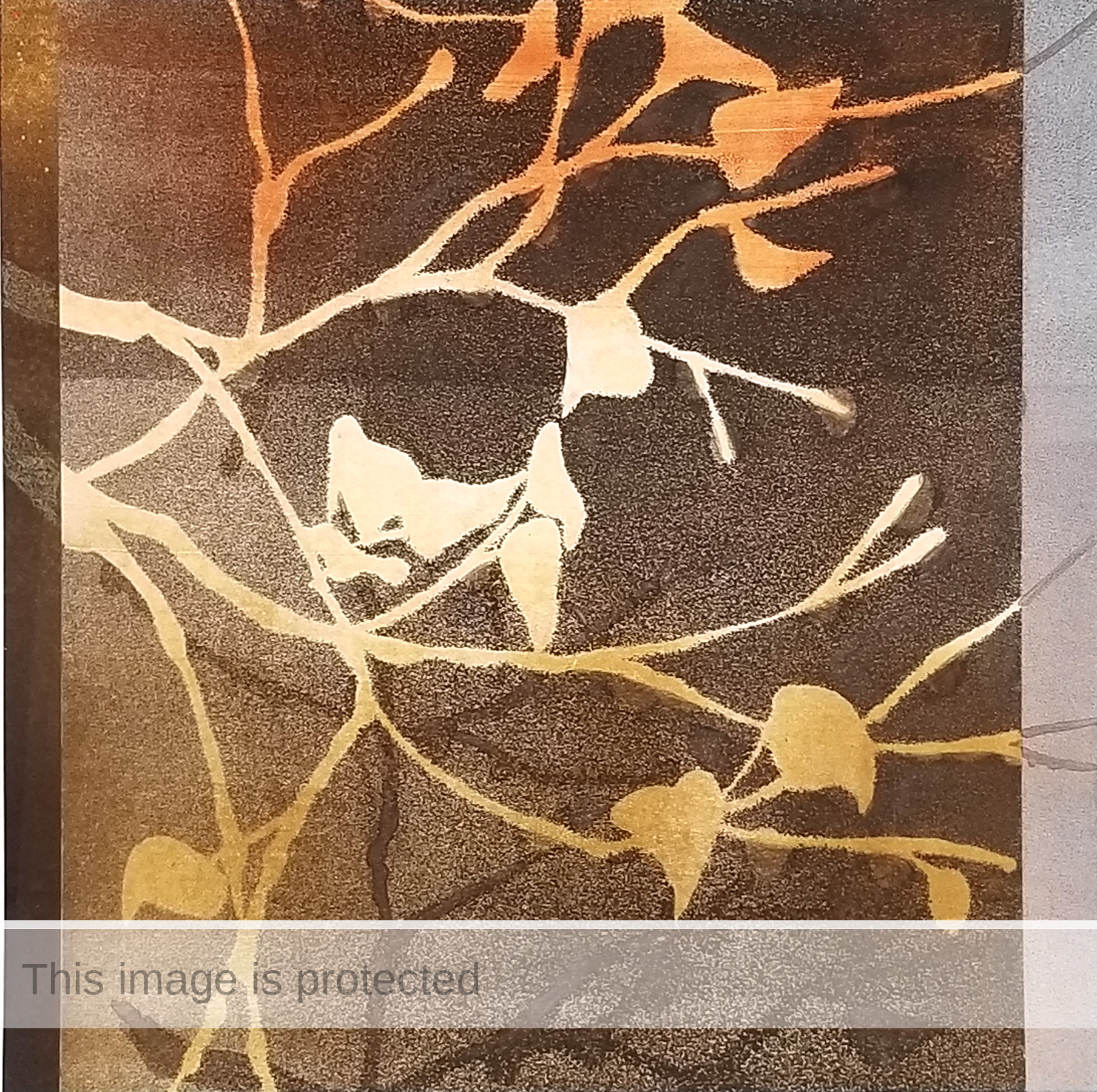 A monotype is a unique print created when ink is applied to a flat surface and an etching press is used to transfer the image from the flat surface to the paper.