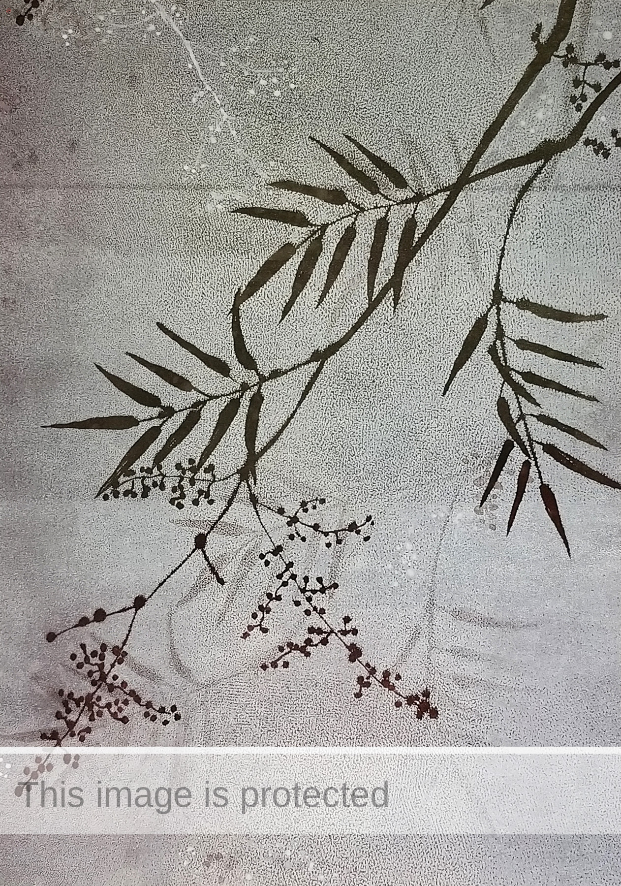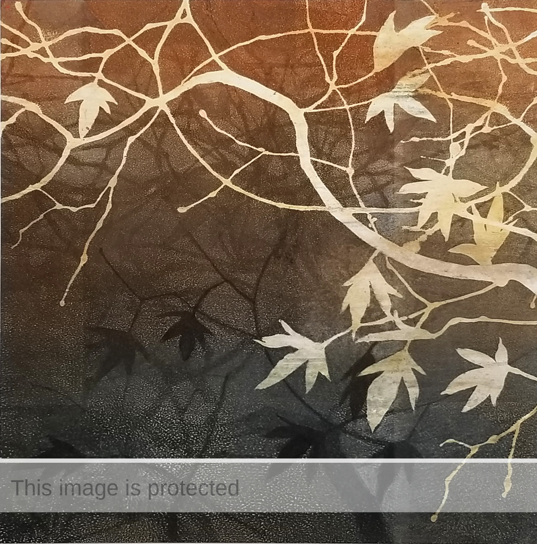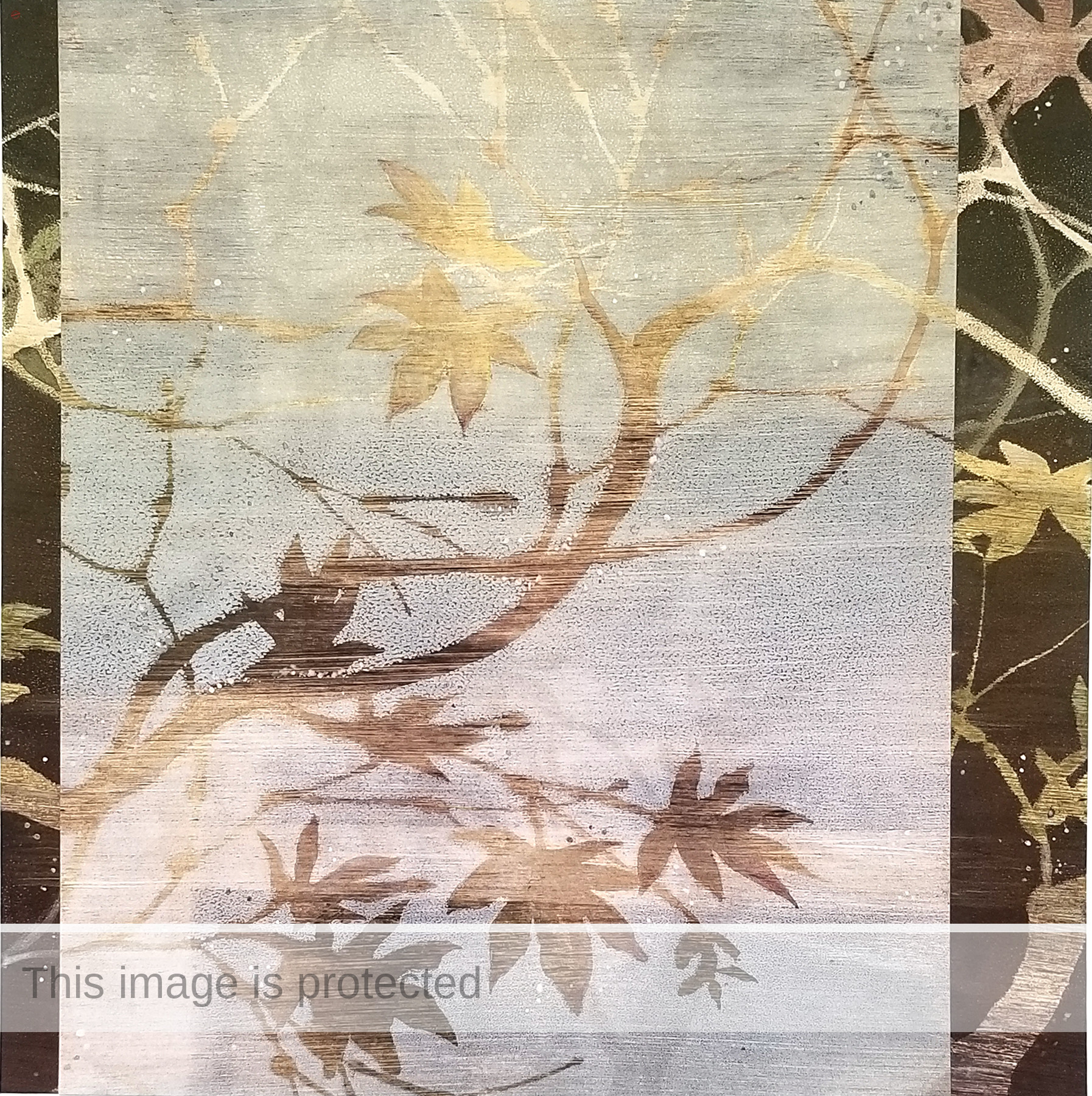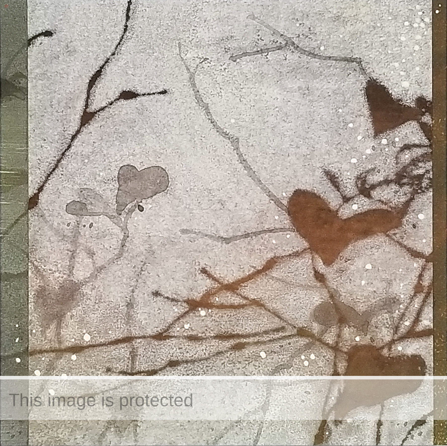 A monotype is a unique print created when ink is applied to a flat surface and an etching press is used to transfer the image from the flat surface to the paper.
